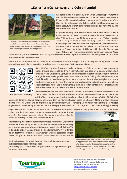 Der westliche Ochsenweg führte an dem heutigen Ort Keller vorbei. Zur Sicherung dieses Handelsweges ließ Graf Gerhard der Große hier im Jahre 1337 die Lewenborch errichten, wie uns Detmar von Lübeck in seiner Chronik berichtet: